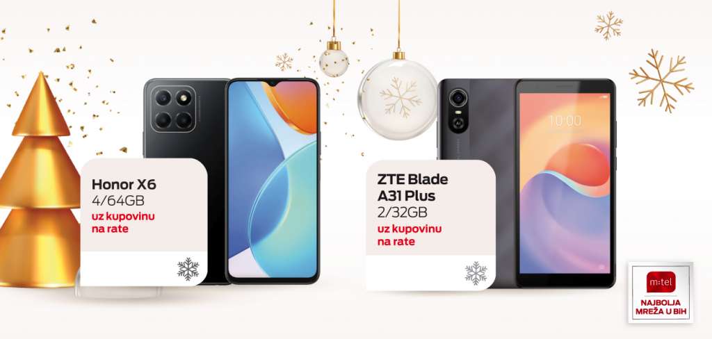 BANJALUKA, 16. siječnja (FENA) - U posebnoj m:tel ponudi predstavljena su dva telefona - HONOR X6 za cjelodnevni rad uz izvanrednu snagu i izuzetno pristupačni ZTE Blade A31 Plus namijenjen za osnovnu upotrebu.