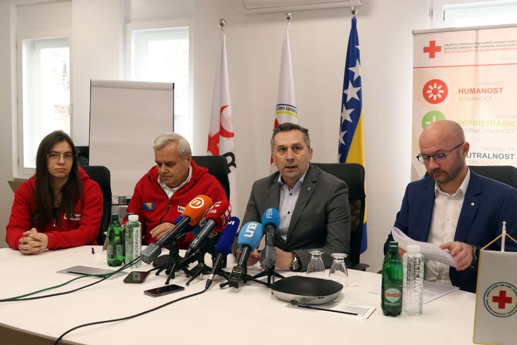 Rajko Lazić, secretary of the Red Cross Society of BiH, Namik Hodžić, general secretary of the FBiH Red Cross, Džana Kapić from the FBiH Red Cross and the head of the delegation of the International Committee of the Red Cross (ICRC) Elmir Camić, presented the results of the action to help the population of Syria and Turkey, as well as further assistance activities at the press conference today.