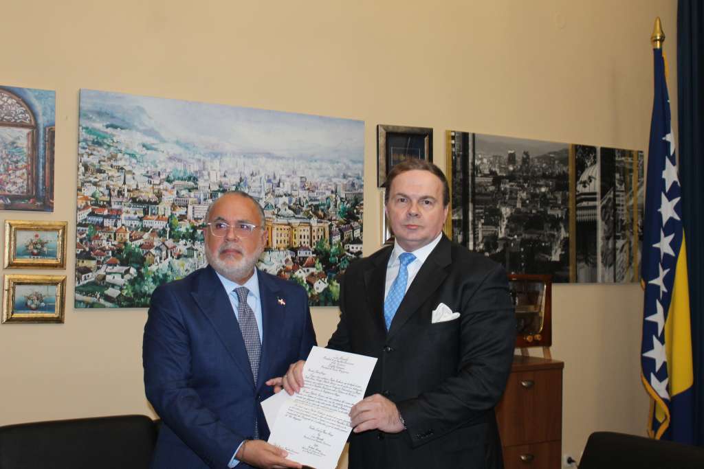 SARAJEVO, 9. marta (FENA) - Novoimenovani ambasador Dominikanske Republike za Bosnu i Hercegovinu sa sjedištem u Bernu Paolo Aramis Valentin Rosario predao je danas kopije akreditivnih pisama.