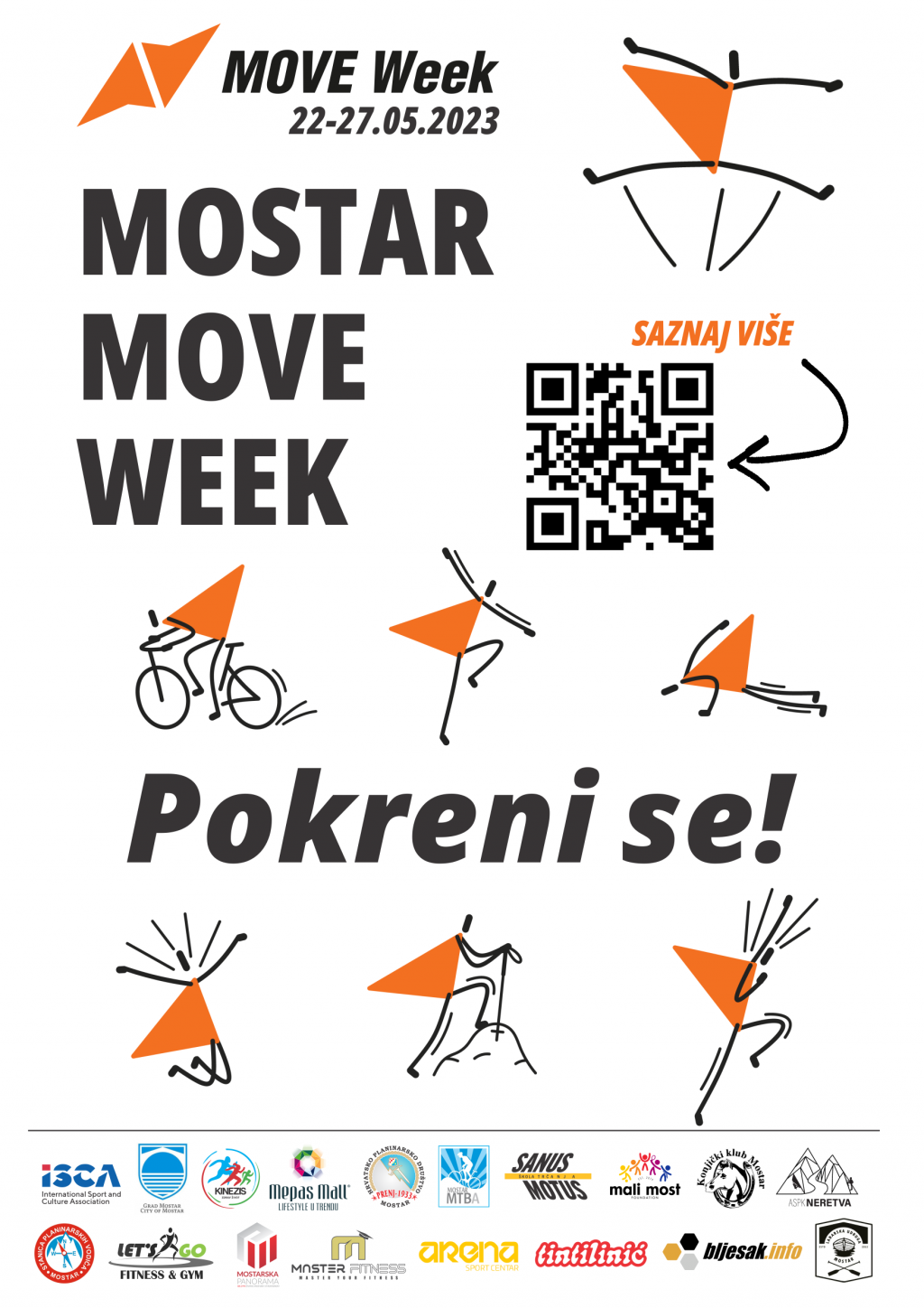 MOSTAR, 19. svibnja (FENA) – Udruga "Zdrav život - KINEZIS" od ponedjeljka, 22. svibnja do nedjelje, 28. svibnja organizira "Mostar Move Week" kao najveći događaj ovakve vrste u Bosni i Hercegovini. Riječ je o godišnjem europskom događaju koji se tradicionalno održava u svibnju i koji je sastavni je dio "NowWeMOVE" kampanje od 2012. godine.