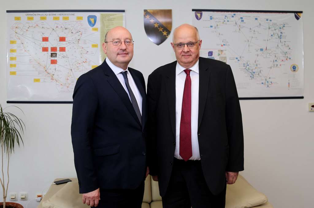 SARAJEVO, 5. srpnja (FENA) - Ravnatelj Granične policije (GP) BiH Mirko Kuprešaković primio je u srijedu u posjet policijskog atašea Veleposlanstva Austrije u BiH Karlheinza Gortana i glavnog koordinatora Zajedničke koordinacijske platforme (JCP) Federalnog ministarstva Austrije Berndta Körnera, s kojima je razgovarao o sigurnosnoj situaciji i izazovima u BiH.