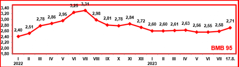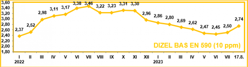Na dan 17. kolovoza 2023. godine bezolovni benzin jeftiniji je za 9,06 posto u odnosu na prosječne cijene u kolovozu 2022. godine. Dizel je u istom razdoblju pojeftinio za 14,91 posto.