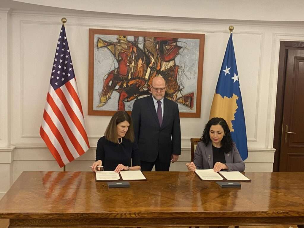 PRIŠTINA, 15. rujna (FENA) - Predsjednica Kosova Vjosa Osmani i v.d. direktorice USAID-a Kerry Monaghan Hogler potpisale su danas u Prištini ugovor o dodjeli bespovratnih sredstava Kosovu u iznosu od 34 milijuna i 727 tisuća dolara.