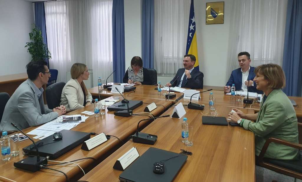MOSTAR, 26. rujna (FENA) - Predstavnici Veleposlanstva SAD-a u BiH iz ekonomskog odjela Allison Stepinac i Edhem Branković posjetili su danas federalnog ministra trgovine Amira Hasičevića i tom prilikom su razgovarali o unaprjeđenju sektora trgovine u Federaciji BiH.