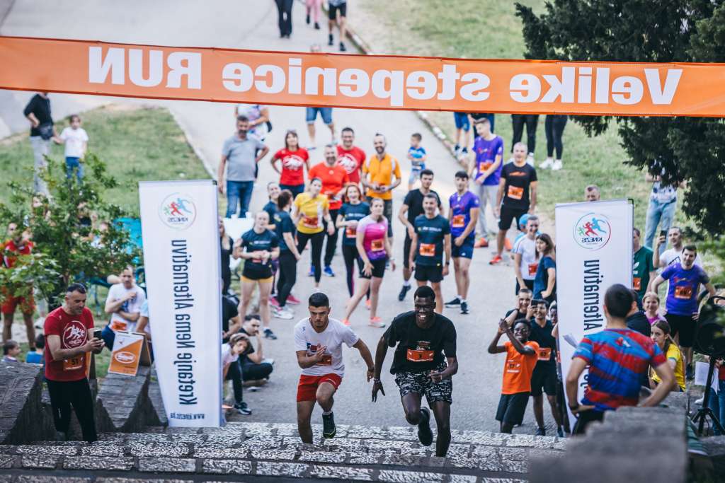 MOSTAR, 30. travnja (FENA) - Kultne mostarske stepenice na Bijelom Brijegu, njih 112 bile su trkačka pozornica za jedinstvenu utrku naziva "Velike stepenice RUN" koja je održana u organizaciji Udruge "Zdrav život - KINEZIS" uz podršku Studentskog centra Mostar i Udruge građana "Bijeli Brijeg".