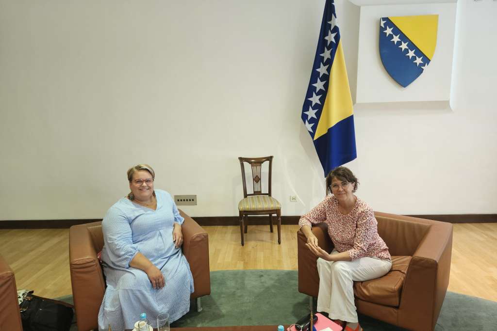 SARAJEVO, 22. augusta (FENA) – Zastupnica u Predstavničkom domu Parlamentarne skupštine Bosne i Hercegovine (PSBiH) i zamjenica predsjedavajućeg Komisije za ostvarivanje ravnopravnosti polova Predstavničkog doma PSBiH Rejhana Dervišević u Sarajevu je sa izvršnom direktorkom Žena socijaldemokrata Finske Noorom Kettunen, razgovarala o unapređenju i osnaživanju uloge žena u institucijama BiH.