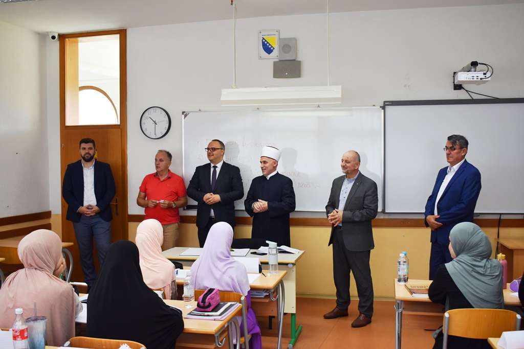 CAZIN, 5. septembra (FENA) – Muftija bihaćki hafiz Mehmed-ef. Kudić posjetio je medresu „Reis Džemaludin-ef. Čaušević“ u Cazinu, gdje se susreo s rukovodstvom, profesorima i učenicima prvih razreda, čestitavši im na početku nove školske godine. Tokom posjete, muftija Kudić je izrazio zadovoljstvo organizacijom medrese te naglasio važnost obrazovanja i odgoja u društvu.