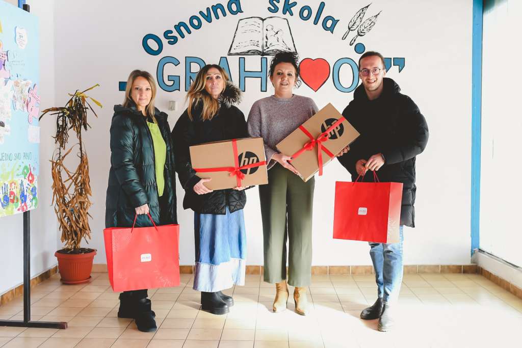 BANJALUKA/GRAHOVO, 11. veljače (FENA) - Nakon što je realizirana ovogodišnja donacija osnovnih životnih namirnica, drva i dječijih paketića u okviru akcije "Niste sami, imate prijatelje" u Bosanskom Grahovu, predstavnici kompanije m:tel su u veljači ponovo posjetili tu općinu kako bi Osnovnoj školi "Grahovo donirali dva laptopa za nastavu.