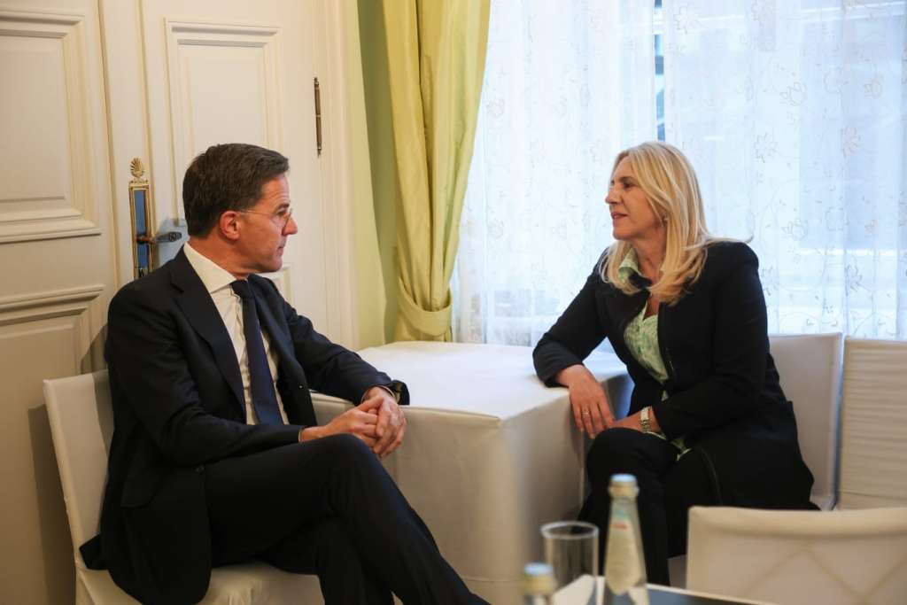 SARAJEVO, 14. februara (FENA) - Predsjedavajuća Predsjedništva Bosne i Hercegovine Željka Cvijanović sastala se danas u Minhenu sa generalnim sekretarom NATO-a Markom Rutteom.