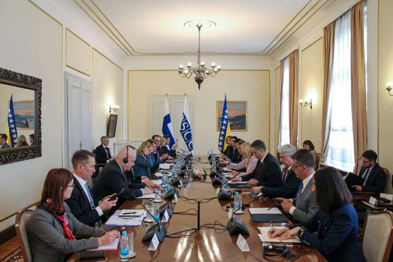 SARAJEVO, February 16 (FENA) – Member of the Presidency of Bosnia and Herzegovina, Denis Bećirović, held an important meeting with U.S. Senator Jim Risch, Chairman of the Senate Committee on Foreign Relations; Senator Jeanne Shaheen, a member of the same Committee; Senator Thom Tillis, a member of the Commission on Security and Cooperation in Europe; Senator Michael Bennet, a member of the Senate Committee on Intelligence; and Congressman Mike Turner, Chairman of the House Intelligence Committee.