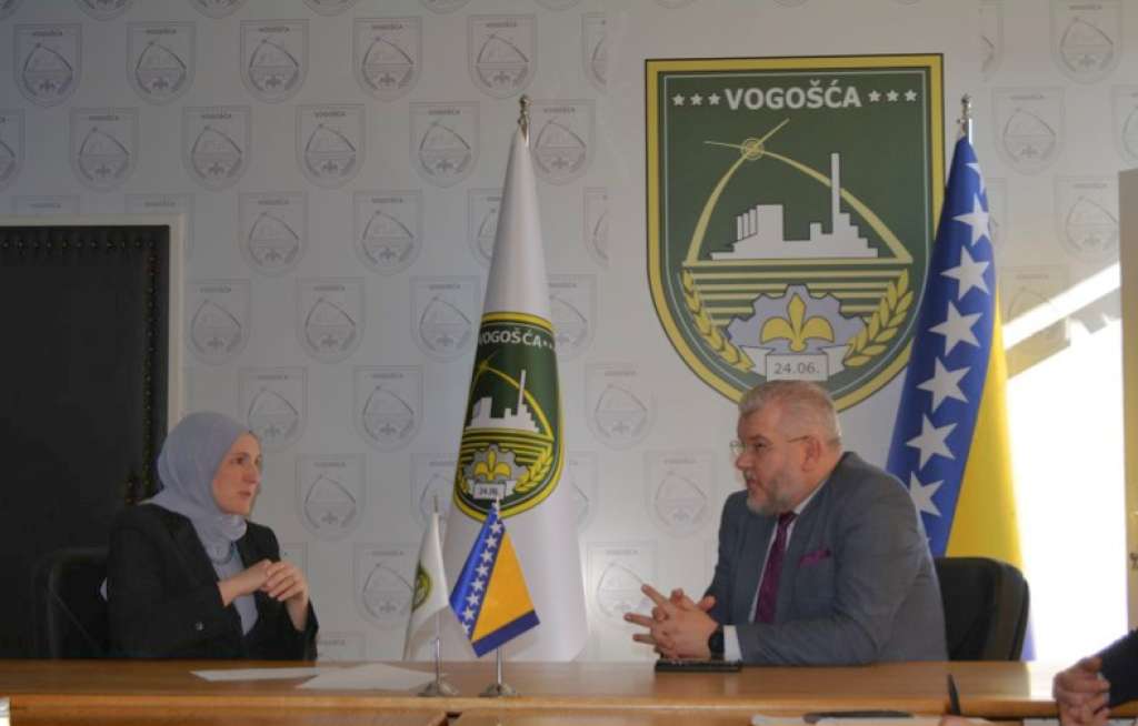 SARAJEVO, 6.marta (FENA) - Ministrica za odgoj i obrazovanje Kantona Sarajevo Naida Hota-Muminović posjetila je Općinu Vogošća i tom prilikom s načelnikom Migdadom Hasanovićem razgovarala o dosadašnjoj saradnji i budućim zajedničkim projektima u oblasti obrazovanja.