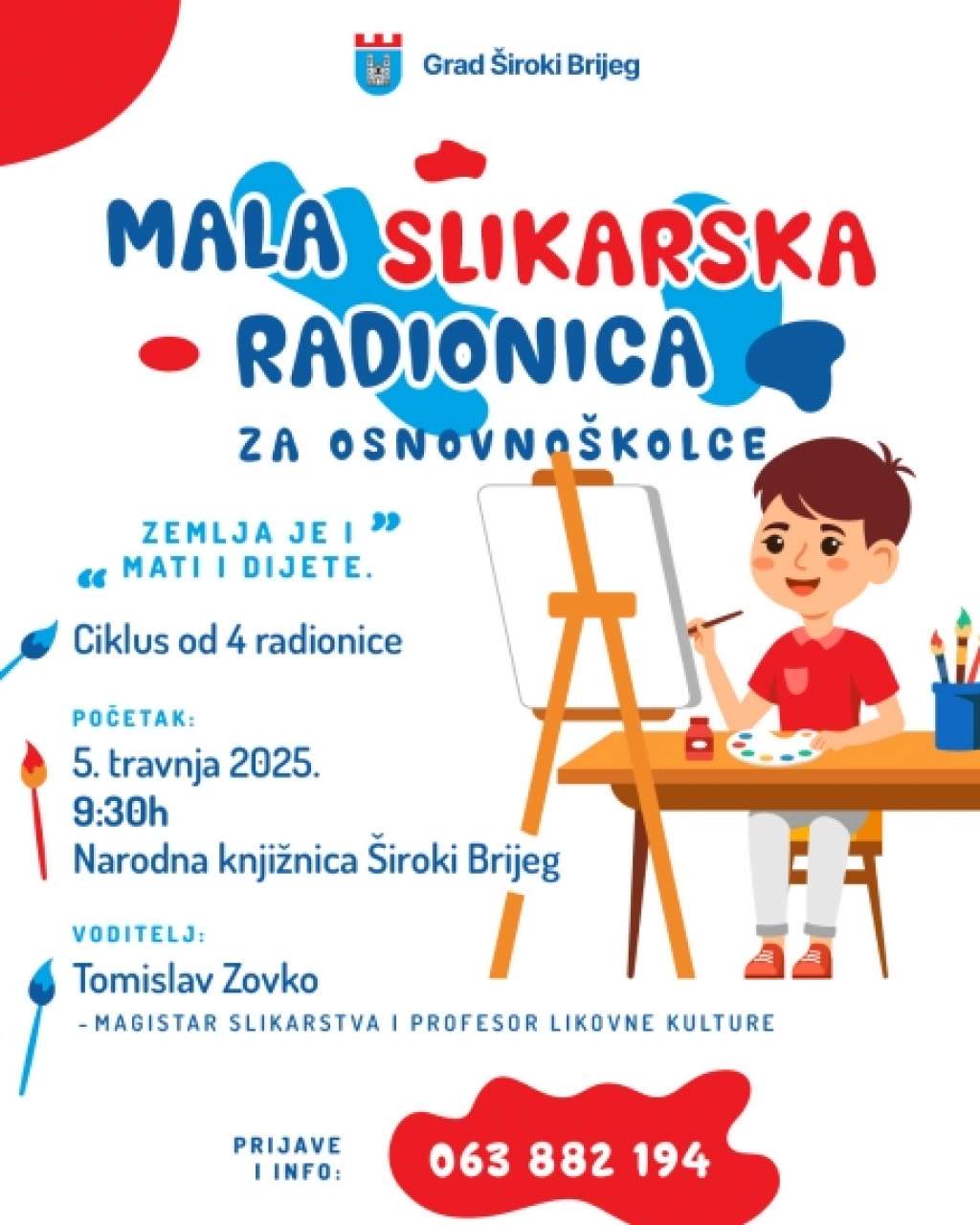 ŠIROKI BRIJEG, 2. travnja (FENA) – U sklopu programa ''Svibanjska sjećanja 2025.'' Grad Široki Brijeg organizira besplatnu slikarsku radionicu za osnovnoškolce pod nazivom ''Zemlja je i mati i dijete''.