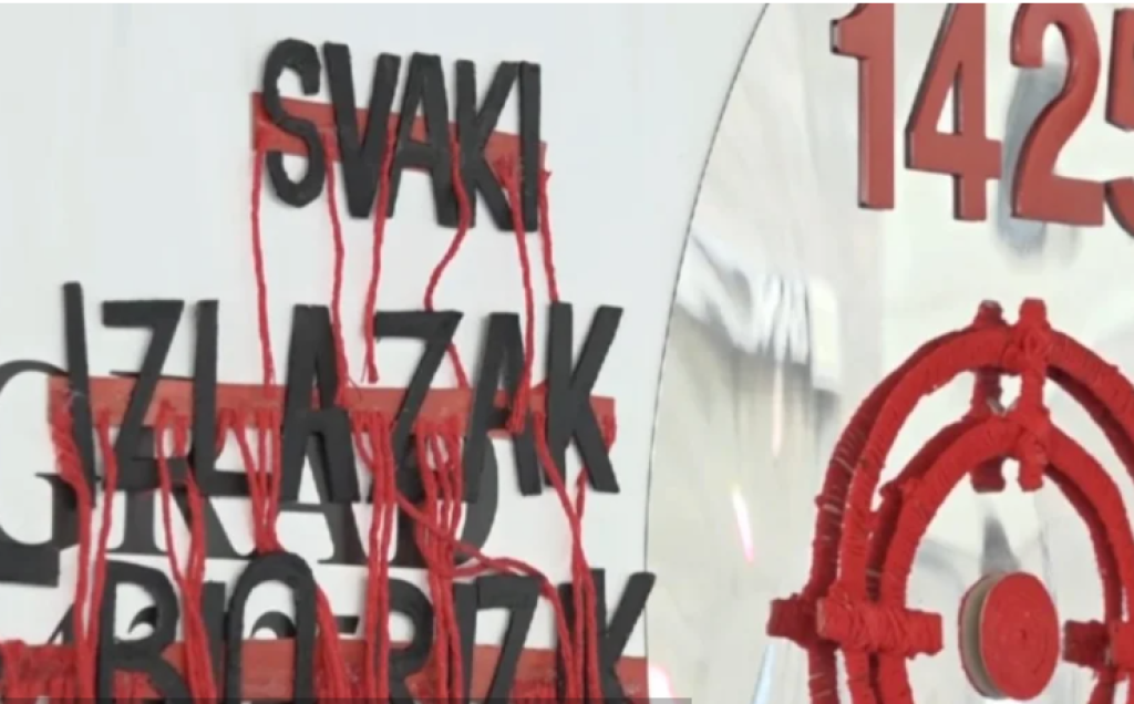 BEOGRAD, 5. travnja (FENA) - Uličnom instalacijom postavljenom u središtu Beograda, aktivistkinje i aktivisti Inicijative mladih za ljudska prava obilježili su 33 godine od početka opsade Sarajeva.