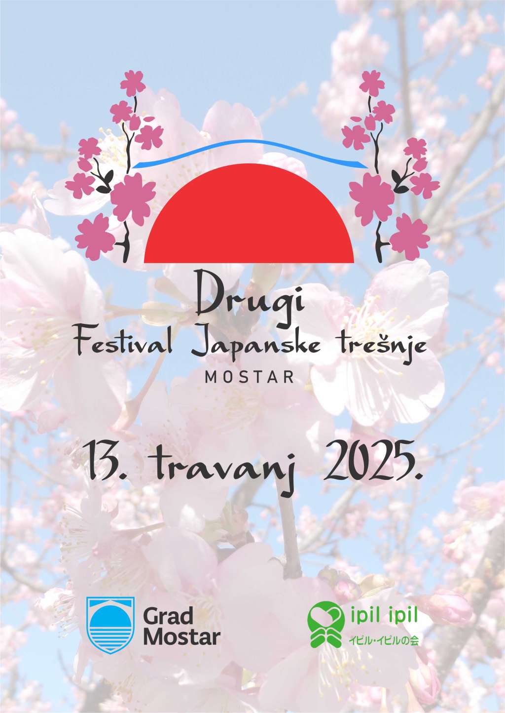 MOSTAR, 12. travnja (FENA) - Drugi festival japanske trešnje održat će se u nedjelju, 13. travnja, s početkom u 11 sati ispred Hrvatskog doma hercega Stjepana Kosače.