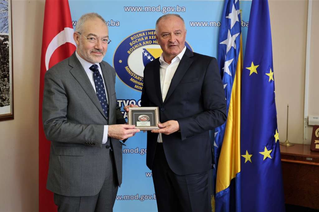 SARAJEVO, 17. aprila (FENA) - Zamjenik predsjedavajuće Vijeća ministara Bosne i Hercegovine i ministar odbrane BiH Zukan Helez primio je u oproštajnu posjetu ambasadora Republike Turske u BiH Sadık Babür Girgina. U delegaciji Republike Turske bio je i brigadir Murat Kul, vojni ataše u BiH.