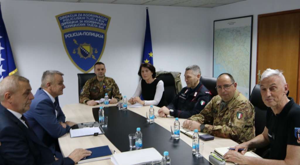 SARAJEVO, April 18 (FENA) – Newly appointed Deputy Commander of EUFOR in Bosnia and Herzegovina, Brigadier General Uberto Incisa di Camerana of the Italian Armed Forces, visited the Directorate for Coordination of Police Bodies of BiH, where he met with the Director of the Directorate, Enes Karić, and his Deputy, Đuro Knežević.