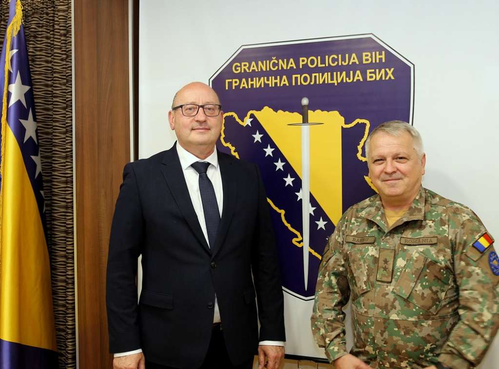 SARAJEVO, 29. aprila (FENA) - Direktor Granične policije Bosne i Hercegovine Mirko Kuprešaković, zamjenik direktora Ensad Korman i pomoćnik direktora za organizaciju i operacije Veljko Lazić sastali su se u ponedjeljak s komandantom EUFOR-a u BiH generalmajorom Florinom Marian Barbuom i njegovim zamjenikom i saradnicima.