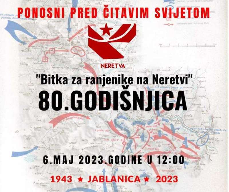 JABLANICA, 3. svibnja (FENA) - Polaganjem cvijeća na Spomen-obilježju i spuštanjem 82 karanfila u Neretvu u Jablanici je u subotu obilježena 82. godišnjica Bitke za ranjenike na Neretvi.