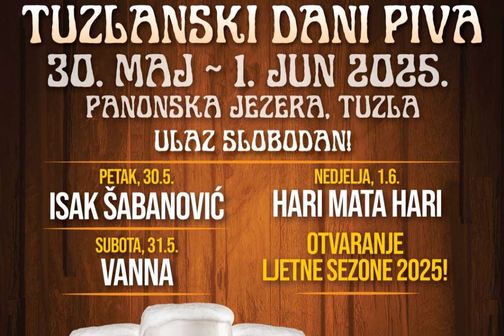 SARAJEVO, 6. maja (FENA) - Treće izdanje festivala Tuzlanski dani piva bit će održano od 30. maja do 1. juna na novoj lokaciji – u srcu kompleksa Panonskih jezera u Tuzli, jedinstvene turističke atrakcije u ovom dijelu Evrope.
