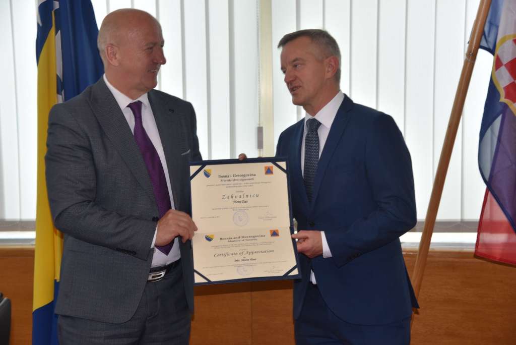 SARAJEVO, 6. maja (FENA)- Zamjenik ministra sigurnosti Bosne i Hercegovine Ivica Bošnjak sastao se danas sa zamjenikom glavnog direktora Glavne uprave Europske komisije za civilnu zaštitu i europske operacije humanitarne pomoći (DG ECHO) Hansom Dasom, s kojim je razgovarao o suradnji BiH s Mehanizmom za civilnu zaštitu Europske unije te ispunjavanju obveza proizašlih iz članstva.