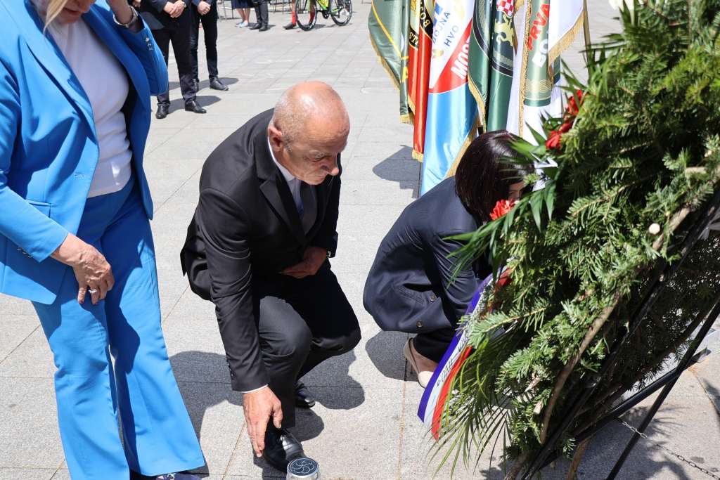 Program obilježavanja započeo je polaganjem vijenaca na Trgu hrvatskih velikana, kod spomenika poginulim hrvatskim braniteljima.