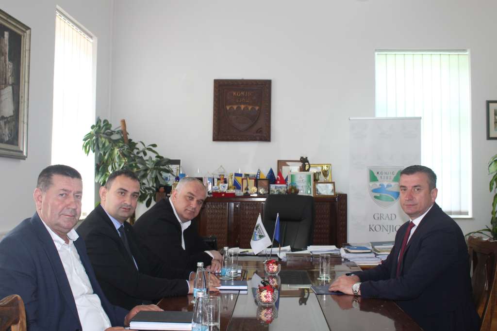 KONJIC, 21. svibnja (FENA) – Načelnik Berkovića Bojan Samardžić posjetio je u srijedu Gradsku upravu Konjic gdje se sastao s gradonačelnikom Osmanom Ćatićem. Tom prigodom razgovarali su o pomoći stanovnicima Konjica pogođenima nedavnim poplavama, kao i o modelima buduće suradnje između dviju lokalnih zajednica.