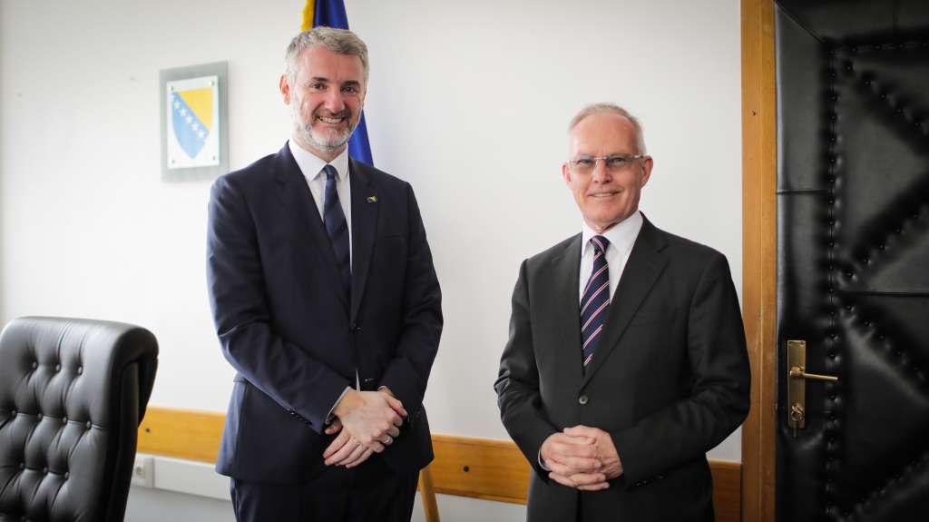 SARAJEVO, 27. maja (FENA) - Ministar komunikacija i prometa Bosne i Hercegovine Edin Forto razgovarao je danas s predstavnikom OSCE-a za slobodu medija Janom Braathuom o finansijskoj održivosti Javnog RTV servisa BiH (BHRT) te potrebi za regulisanjem vlasništva nad elektronskim medijima s ciljem postizanja veće transparentnosti.