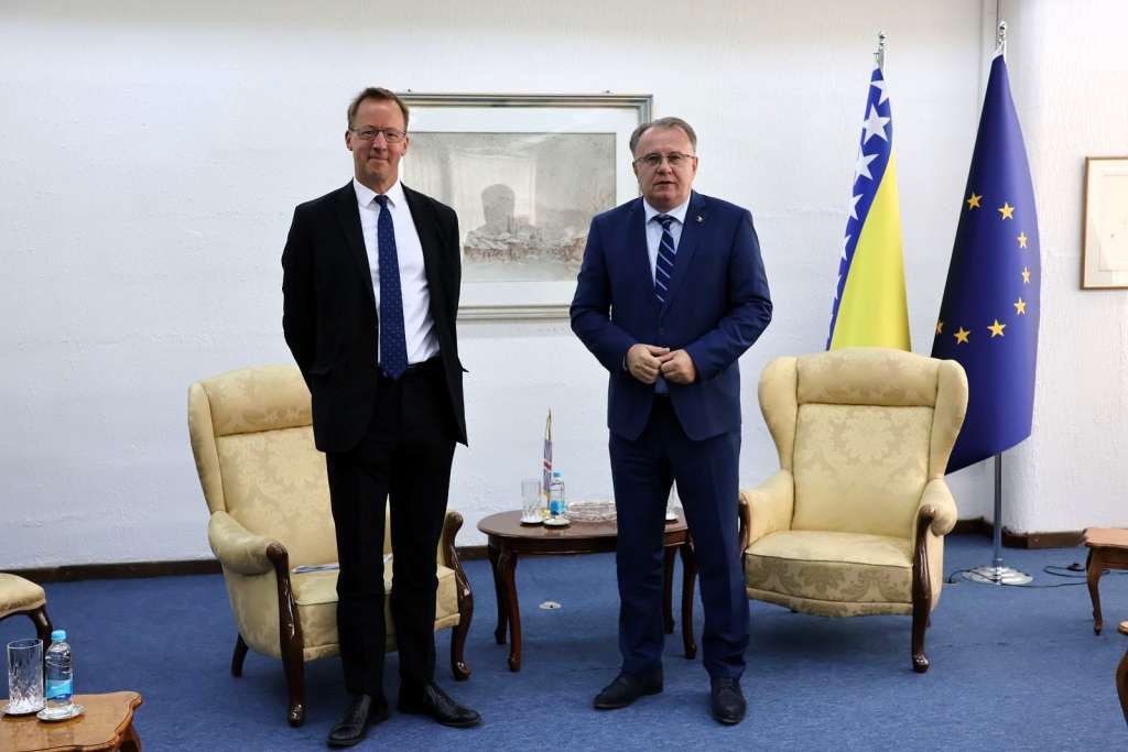 SARAJEVO, May 27 (FENA) – The Prime Minister of the Federation of Bosnia and Herzegovina, Nermin Nikšić, today welcomed the United Kingdom's Trade Commissioner for Europe, Chris Barton, and the UK Ambassador to Bosnia and Herzegovina, Julian Reilly, at the FBiH Government headquarters in Sarajevo.