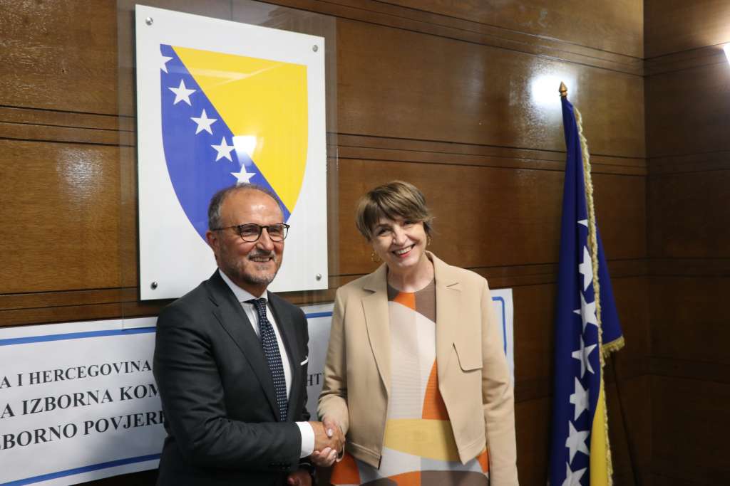 SARAJEVO, 2. juna (FENA) - Šef Delegacije Evropske unije i specijalni predstavnik Evropske unije u Bosni i Hercegovini ambasador Luigi Soreca danas je posjetio Centralnu izbornu komisiju BiH (CIKBiH), gdje se sastao sa predsjednicom Irenom Hadžiabdić i članovima te komisije Ahmetom Šantićem i Željkom Bakalarom.