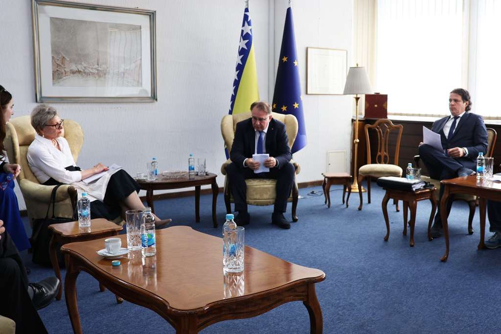 SARAJEVO, June 3 (FENA) – Prime Minister of the Federation of Bosnia and Herzegovina Nermin Nikšić and Deputy Prime Minister and Minister of Finance Toni Kraljević met today with Charlotte Ruhe, EBRD Managing Director for Central and South Eastern Europe, at the seat of the FBiH Government in Sarajevo.