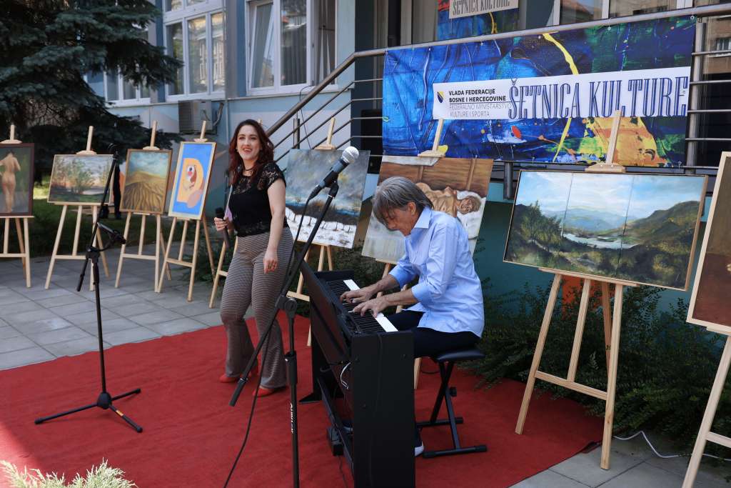 SARAJEVO, 11. juna (FENA) - Učenici završne godine Srednje škole primijenjenih umjetnosti Odsjek slikarstvo te studenti Akademije likovnih umjetnosti izložili su radove na šetnici Obala Maka Dizdara u Sarajevu, u okviru projekta Federalnog ministarstva kulture i sporta "Šetnica kulture".