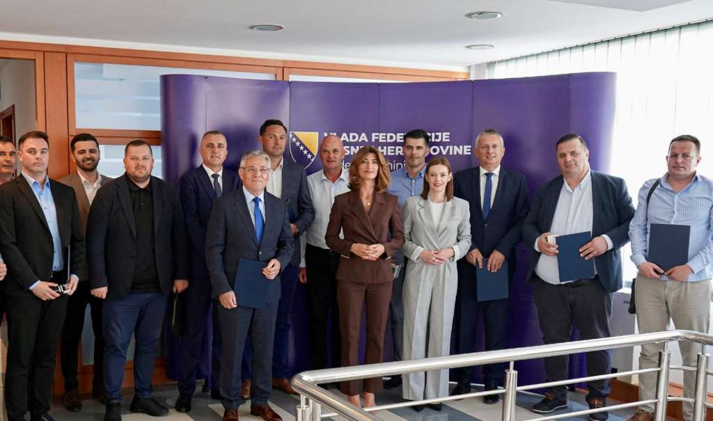 MOSTAR, 12. lipnja (FENA) - Federalna ministrica prometa i komunikacija Andrijana Katić u četvrtak je u sjedištu Federalnog ministarstva prometa i komunikacija u Mostaru potpisala Sporazume o dodjeli sredstava na osnovu provedenog Javnog poziva za financiranje projekata kroz Program utroška sredstava "Kapitalni transferi drugim razinama vlasti i fondovima" s predstavnicima županija odnosno županijskih direkcija za ceste, gradova i općina u Federaciji Bosni i Hercegovini.
