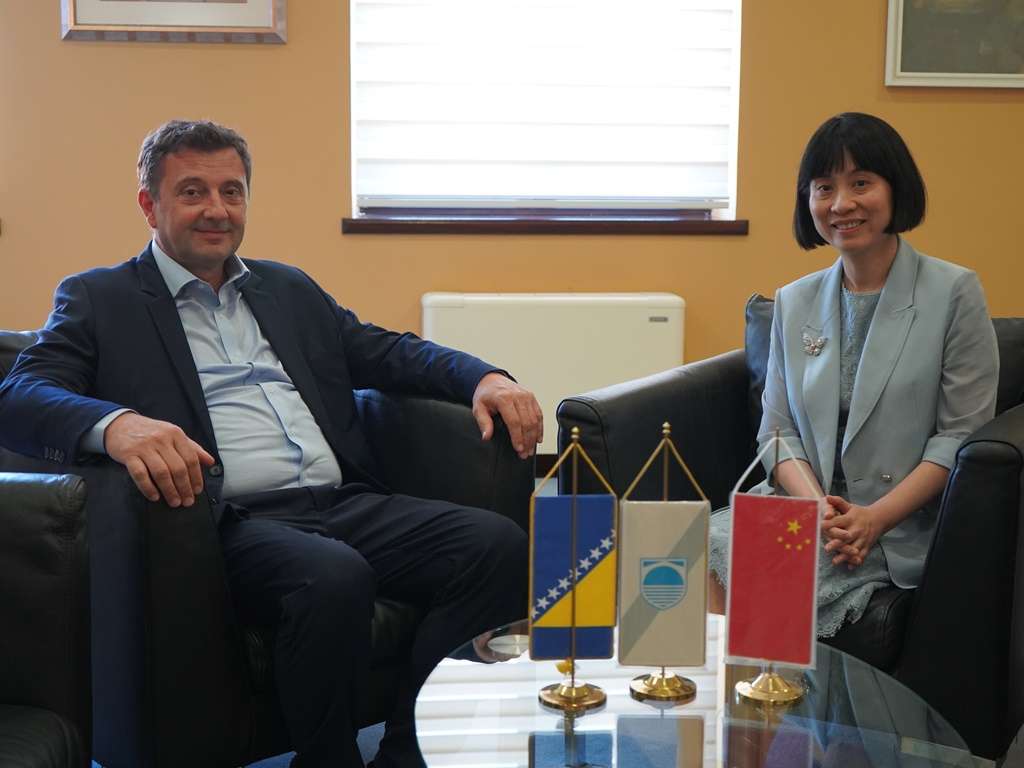 MOSTAR, 16. lipnja (FENA) - Gradonačelnik Mostara Mario Kordić u ponedjelajk je u Gradskoj vijećnici primio u nastupni posjet veleposlanicu Narodne Republike Kine u Bosni i Hercegovini Li Fan. Tijekom razgovora zajednički je ocijenjeno kako su odnosi Bosne i Hercegovine i Kine veoma dobri, te postoje mogućnosti da se isti dodatno unaprijede u svim poljima.