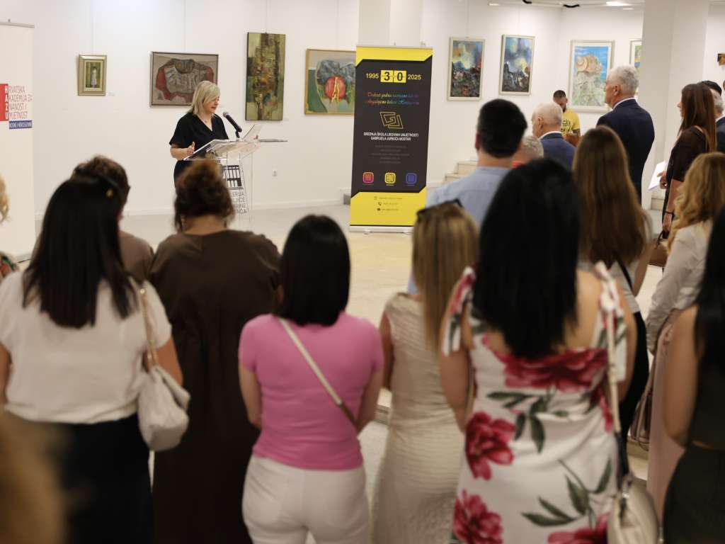 MOSTAR, 17. lipnja (FENA) – U sklopu manifestacije "Dani Hrvatske akademije za znanost i umjetnost u BiH", u utorak navečer otvorena je izložba sadašnjih i bivših profesora u povodu 30. obljetnice osnivanja Srednje škole likovnih umjetnosti Gabrijela Jurkića Mostar.