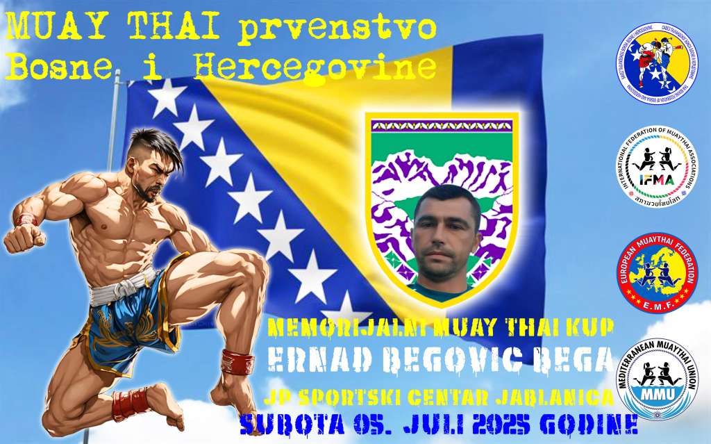 JABLANICA, 18. lipnja (FENA) – Savez tajlandskog boksa Bosne i Hercegovine organizira državno prvenstvo u Muay Thai sportu te prvi Otvoreni memorijalni Muay Thai kup "Ernad Begović", koji će biti održani 5. srpnja u sportskoj dvorani u Jablanici, s početkom u 19 sati.