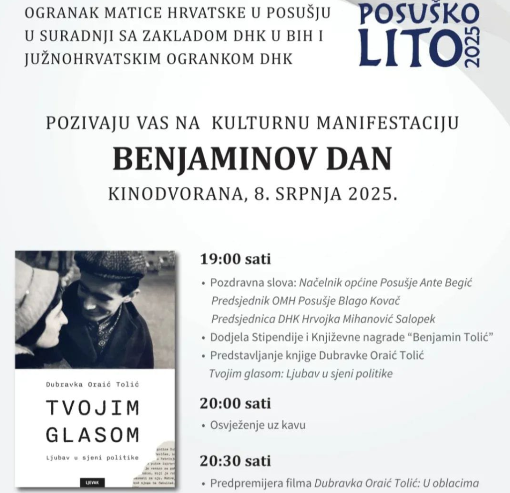 POSUŠJE, 3. srpnja (FENA) - Benjaminov dan odražava se već treću godinu u sklopu Posuškog lita u čast književnika, publicista, prevoditelja i diplomata Benjamina Tolića.