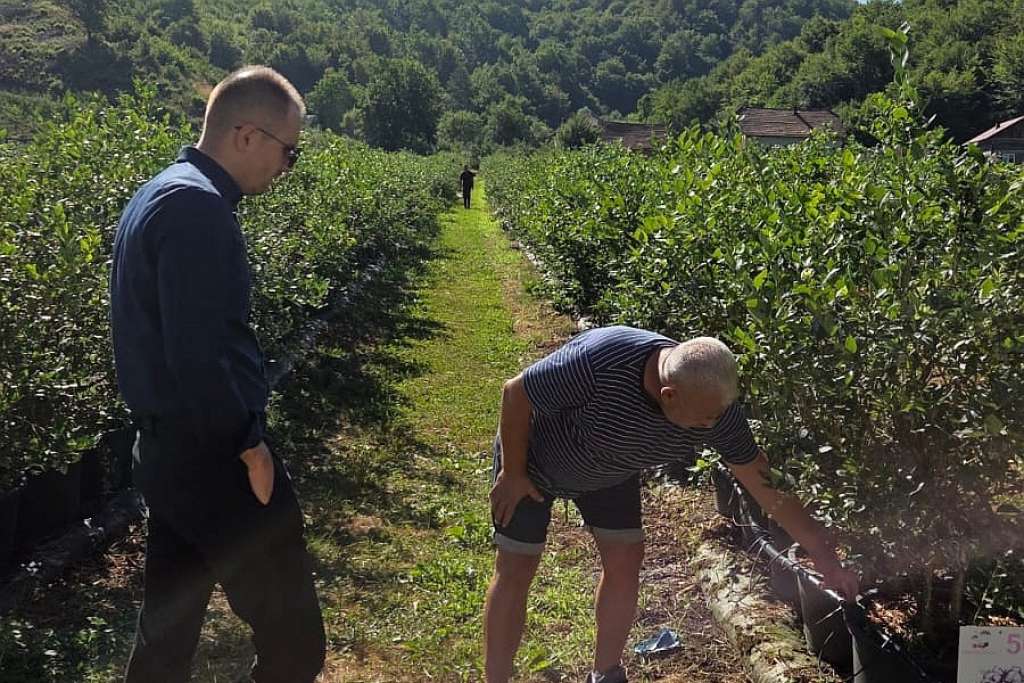 SARAJEVO, 3. jula (FENA) - Ministar za poljoprivredu, vodoprivredu i šumarstvo Zeničko-dobojskog kantona Jasmin Čajić posjetio je jednu od dvije najveće plantaže borovnice u Bosni i Hercegovini, koja se nalazi u Visokom. Radi se o kompaniji Frutti Funghi koja u svom vlasništvu ima zasade borovnice na površini od šest hektara.