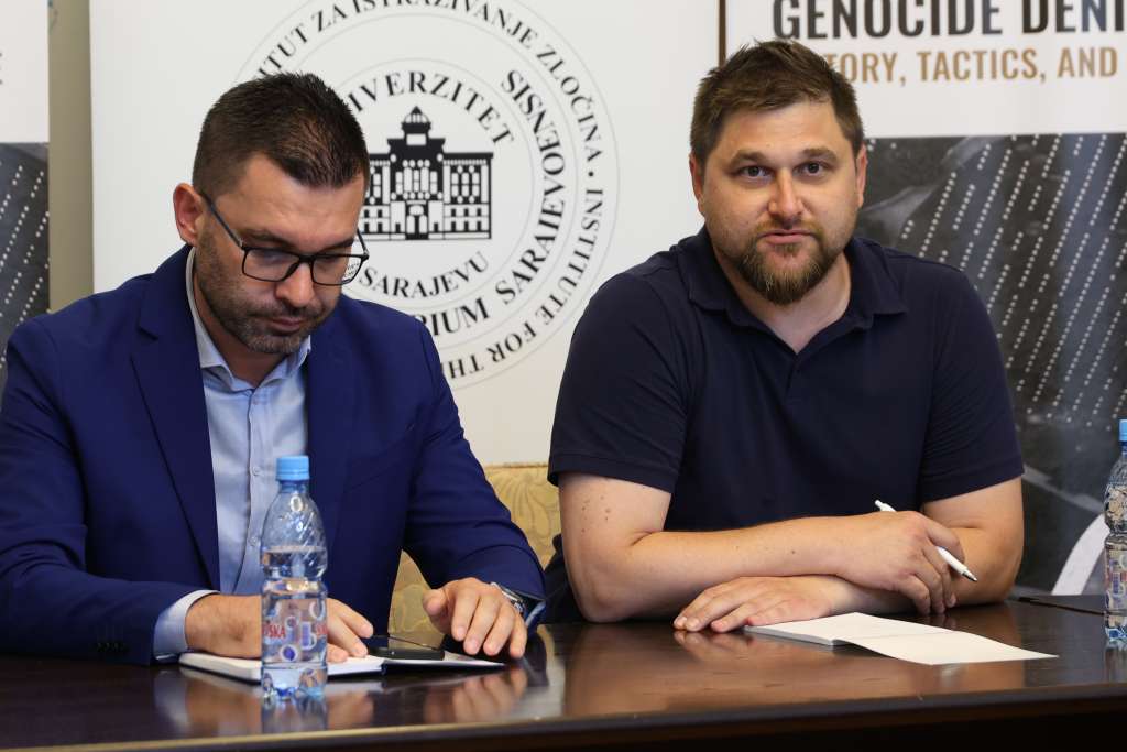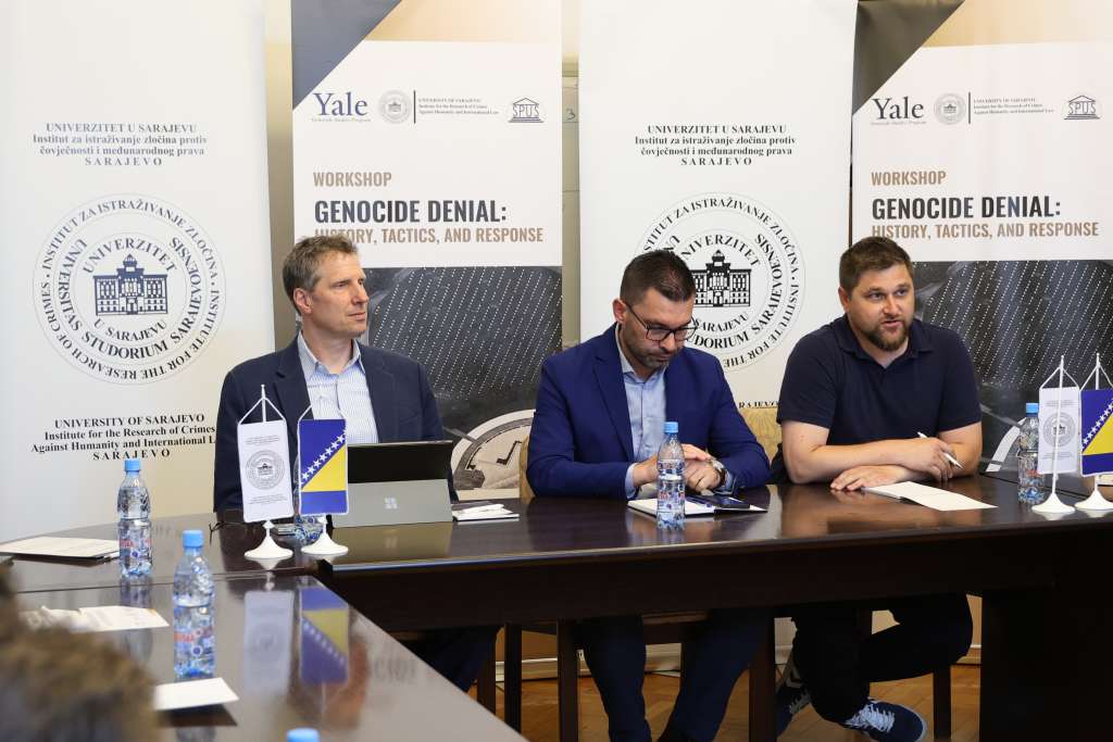 SARAJEVO, 4. jula (FENA) - Radionica „Negiranje genocida: historija, taktike i odgovori“ održana je danas u Rektoratu Univerziteta u Sarajevu.