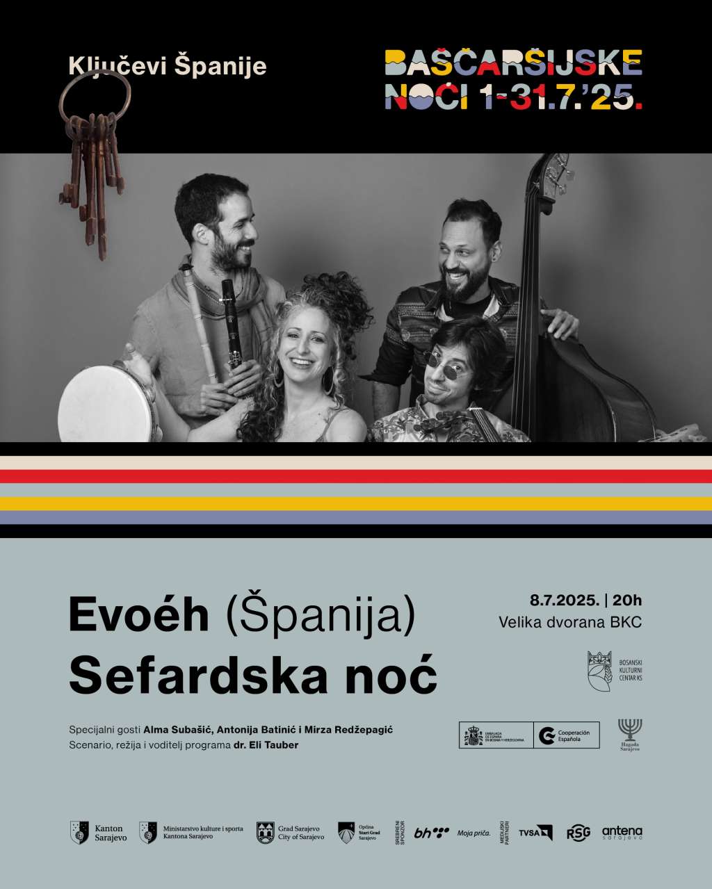 SARAJEVO, 7. jula (FENA) - Program "Sefardska noć - Ključevi Španije" bit će održan u utorak, 8. jula u Bosanskom kulturnom centru Kantona Sarajevo, u okviru Festivala "Baščaršijske noći".
