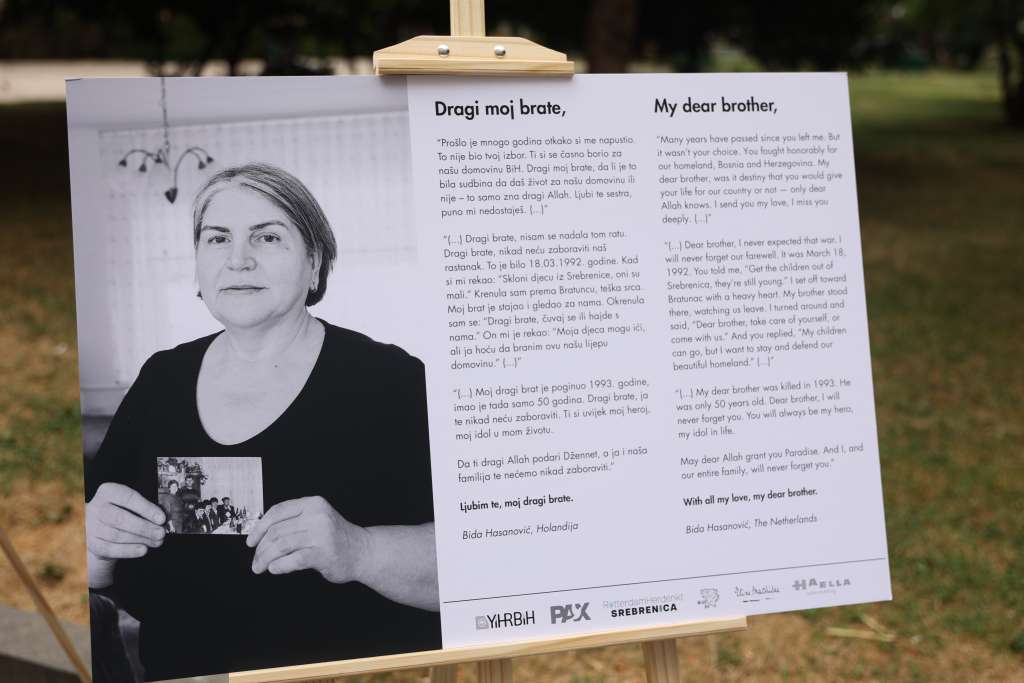SARAJEVO, 10. juli (FENA) - Trg fra Grge Martića u Sarajevu bio je danas mjesto ispunjeno empatijom i bolnim emocijama u znak sjećanja na nedužne žrtve genocida u Srebrenici. Otvorena je tu izložba "Dragi moji - Srebrenička pisma", gdje su čitana pisma preživjelih žrtava upućena očevima, djedovima, braći i sinovima ubijenim u Srebrenici. Građani su mogli osjetiti bol, ljubav i sjećanje onih koji su izgubili svoje najmilije u genocidu.