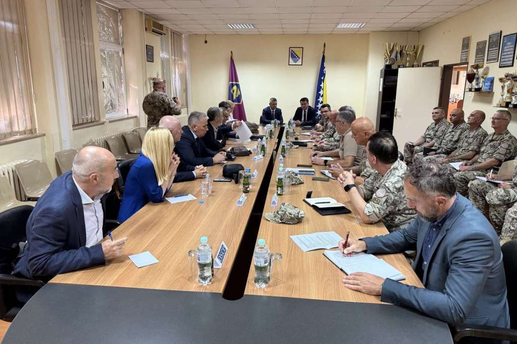 SARAJEVO, 10. jula (FENA) - Predsjedavajući Zajedničke komisije za odbranu i bezbjednost BiH Jasmin Imamović, članovi Zajedničke komisije Milan Dunović i Šerif Špago te parlamentarni vojni povjerenik BiH Boško Šiljegović boravili su danas u terenskoj posjeti Komandi 4. pješadijske brigade Oružanih snaga Bosne i Hercegovine (OSBiH), u Kasarni 'Božan Šimović' u Čapljini.