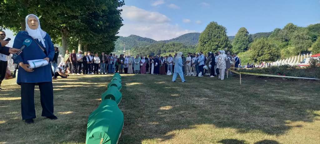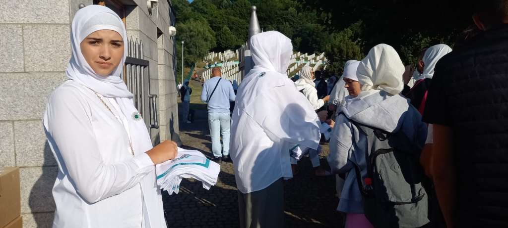 POTOČARI/SREBRENICA, 11. jula (FENA) - U Memorijalni centar Potočari pristižu građani iz cijelog svijeta kako bi na dostojanstven način odali počast nevino ubijenim žrtvama genocida. U ranim jutarnjim satima članice Udruženja pokret “Majke enklava Srebrenica i Žepa” u Memorijalnom centru Potočari podjelile su bijele marame majkama, sestrama i gošćama, koji su došli da odaju poštu ili klanjaju dženazu žrtvama genocida u Srebrenici.