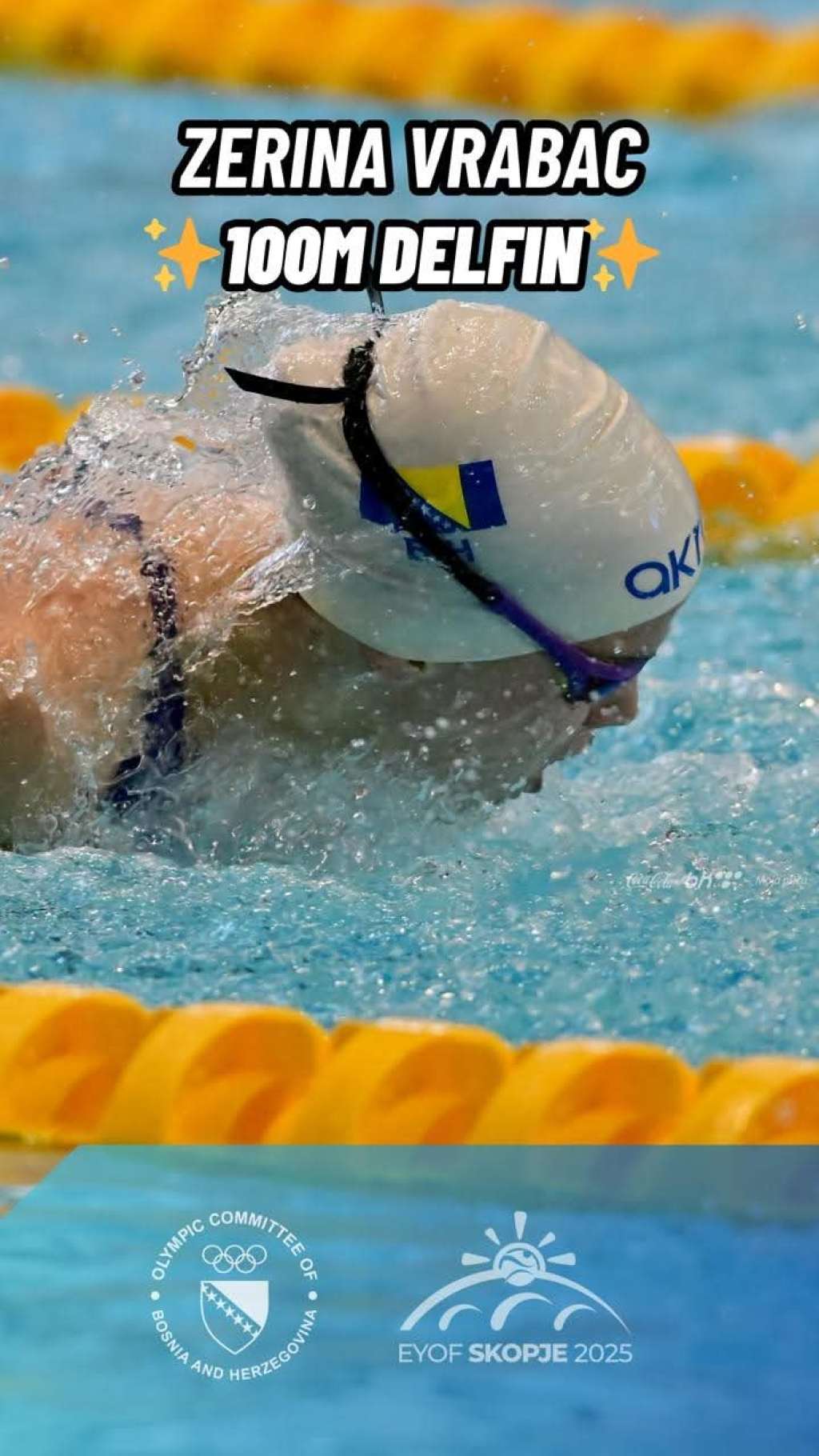 SKOPLJE, 24. jul (FENA) – Mlada bosanskohercegovačka plivačica Zerina Vrabac, koja je u finalu na 200 metara delfin bila druga te osvojila srebrenu medalju, danas je u finalu na 100 metara delfin bila peta na 18. ljetnom Evropskom olimpijskom festivalu mladih (EYOF), za sportaše i sportašice od 14 do 18 godina, koje se održava u Skoplju i Kumanovu u Sjevernoj Makedonije te hrvatskom gardu Osijeku, koji je suorganizator ovog takmičinja evropskih sportskih nada.