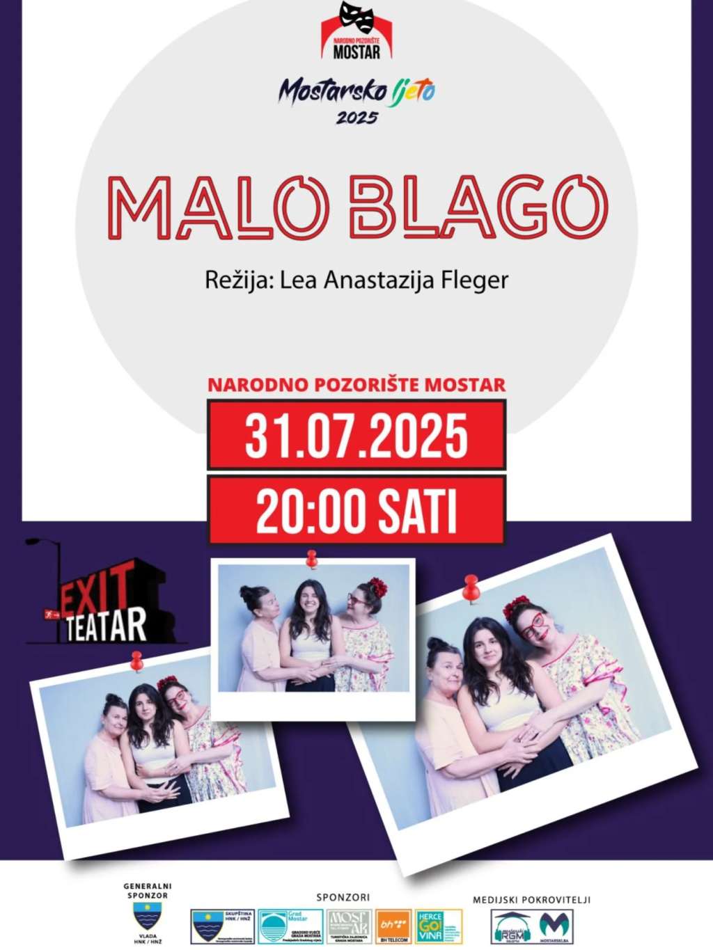 MOSTAR, 31. srpnja (FENA) - Na programu "Mostarskog ljeta 2025" publiku večeras očekuju dva zanimljiva sadržaja: predstava "Malo blago" i predstavljanje fotomonografije "Mostar u vrijeme socijalizma".