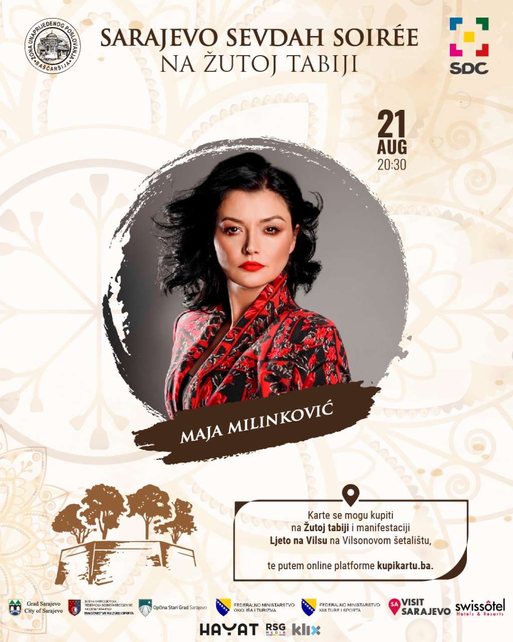 SARAJEVO, 24. augusta (FENA) - Večeras se završava ovogodišnji festival Sarajevo Sevdah Soiree, a nakon sinoćnjeg koncerta Tončija Huljića i benda Madre Bedessa, na jednoj od najljepših sarajevskih pozornica pod otvorenim nebom, na Žutoj tabiji, nastupit će Maja Milinković.