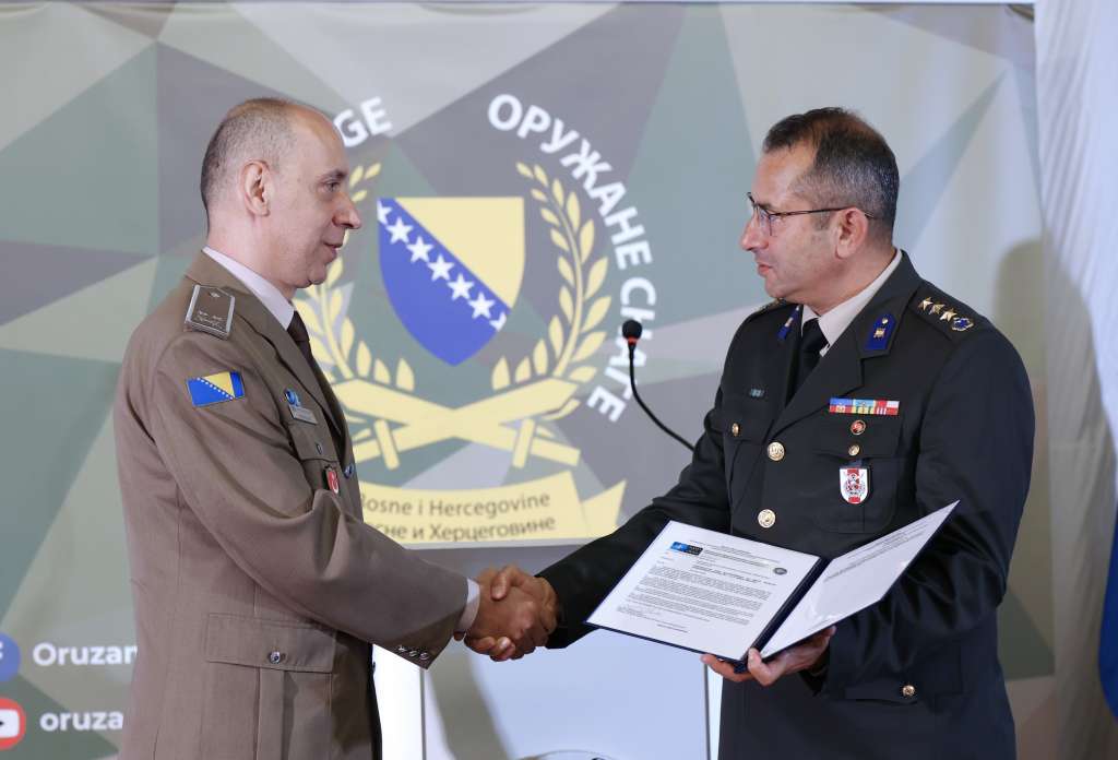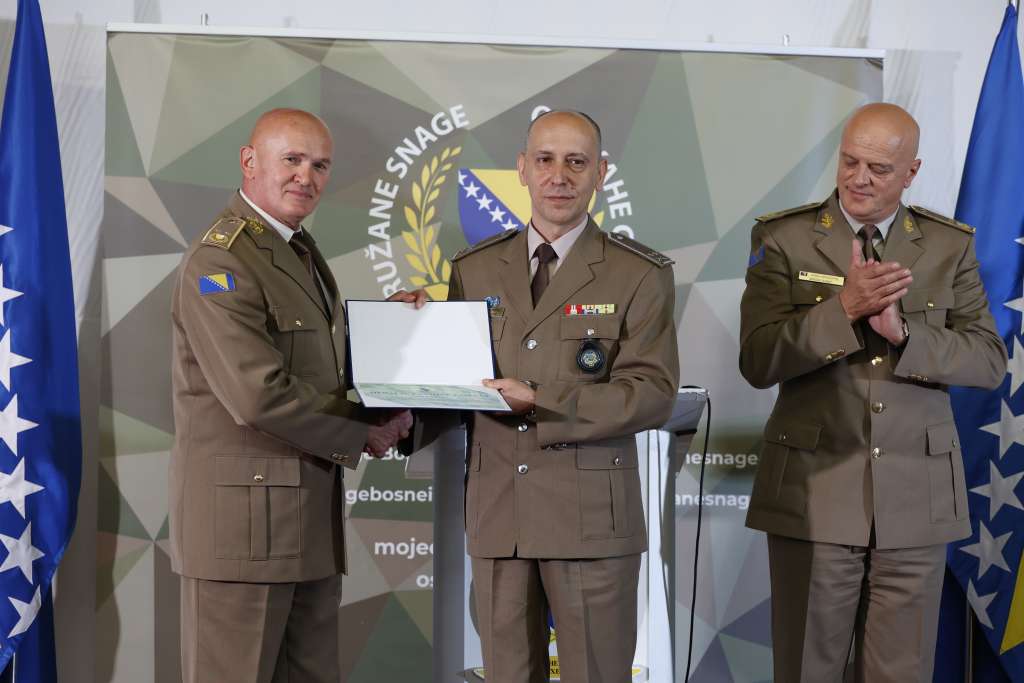 SARAJEVO, September 5 (FENA) – Acting Inspector of the Tactical Support Brigade of the Armed Forces of BiH, Colonel Amer Riković, was today in Sarajevo awarded an individual NATO accreditation and the title of Quality Assurance Specialist, serving as a Quality Assurance Manager, as well as the Medal for Military Merits of the Ministry of Defense of BiH.