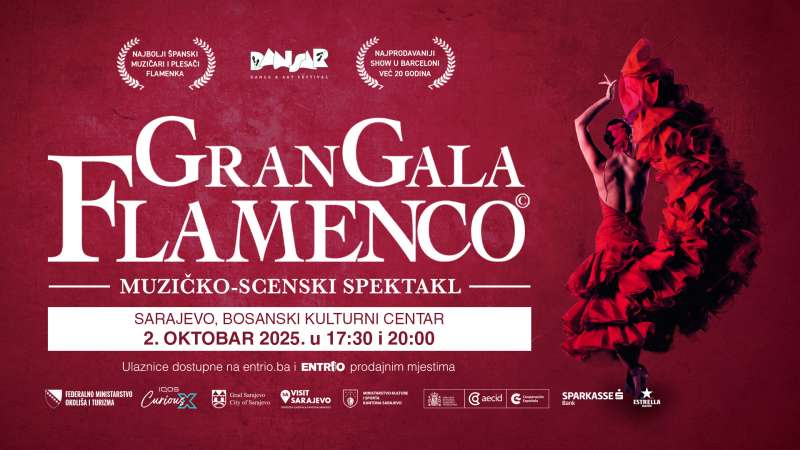SARAJEVO, 8. septembra (FENA) - Gran Gala Flamenco spektakl iz Španije stiže u Sarajevo 2. oktobra, publika će u koncertnoj dvorani Bosanskog kulturnog centra (BKC) imati priliku uživati u muzičko-scenskom doživljaju koji spaja strast, muziku i ples u izvedbi vrhunskih umjetnika iz Barselone.