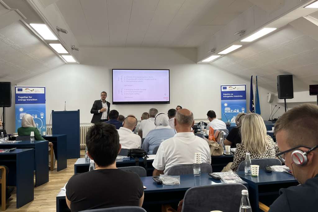 SARAJEVO, 9. septembra (FENA) - Radionica održana u Tuzli, u okviru EU4CAET projekta za lokalnu energetsku tranziciju, okupila je predstavnike jedinica lokalne samouprave i civilnog društva s ciljem upoznavanja s najboljim praksama Evropske unije u implementaciji održivih projekata, kao i razmjene iskustava i ideja o mogućnostima lokalne energetske tranzicije.