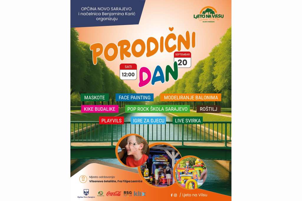 SARAJEVO, 18. septembra (FENA) - U okviru manifestacije Ljeto na Vilsu, Općina Novo Sarajevo organizuje Porodični dan - događaj posvećen druženju, radosti i pjesmi, koji će biti održan u subotu od 12 sati.