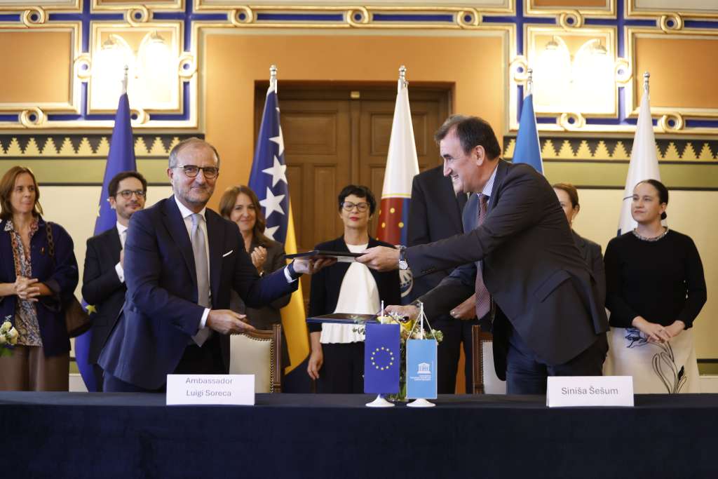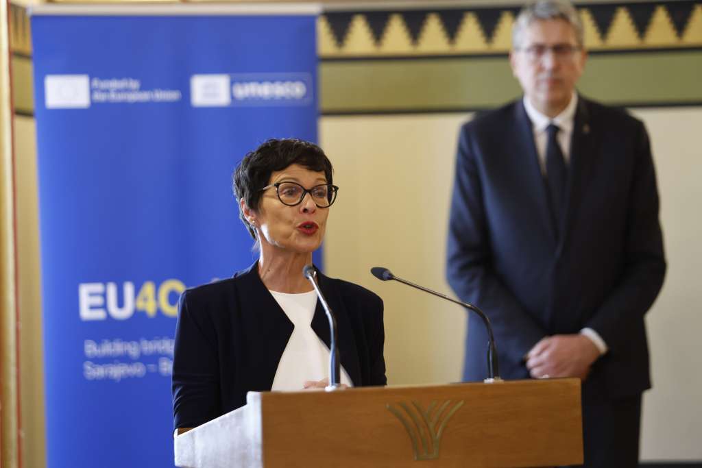 SARAJEVO, September 22 (FENA) – Culture and art are what connect people, said European Union Enlargement Commissioner Marta Kos during her visit to Sarajevo City Hall, where she was welcomed by Mayor Samir Avdić for the official launch of the Ars Aevi Contemporary Art Museum construction project.